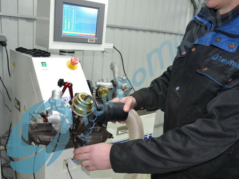 12. Проводиться проверка и регулировка пневматического либо электронного клапана (актуатора) турбокомпрессора. А для турбокомпрессора, оснащенного механизмом изменяемой геометрии, производится настройка и регулировка давления наддува по оригинальным спецификациям производителей автомобилей, на стенде TurboTechnics VTR 200 (Англия);