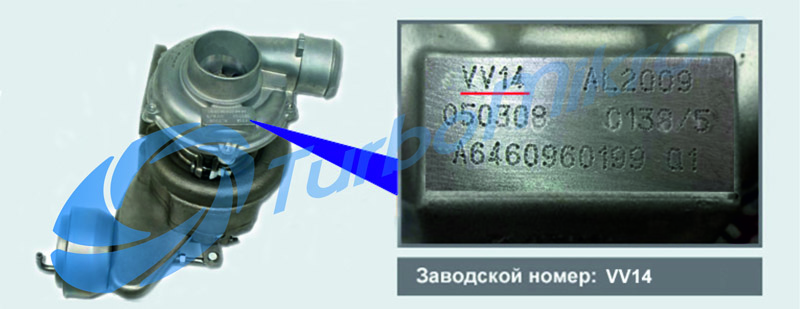 Номер турбины также может быть отлит на корпусе турбины (горячей улитке), но только вторая половина полного номера турбины «64060» (см. рис.), без цифр «17201».