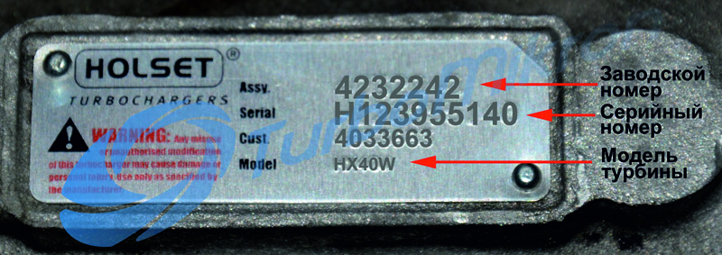 Заводской номер турбин Holset выглядит следующим образом: