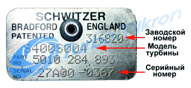 Заводской номер турбин Schwitzer выглядит следующим образом:
