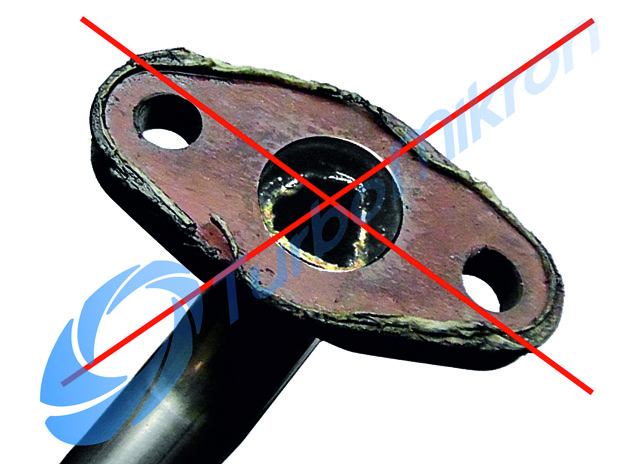 - установить новую прокладку между турбокомпрессором и выпускным коллектором так, чтобы выступающий поясок был направлен в сторону выпускного коллектора. Прокладка между выпускным коллектором и головкой блока цилиндров устанавливается пояском к головке (прокладки выпускной системы одноразовые);