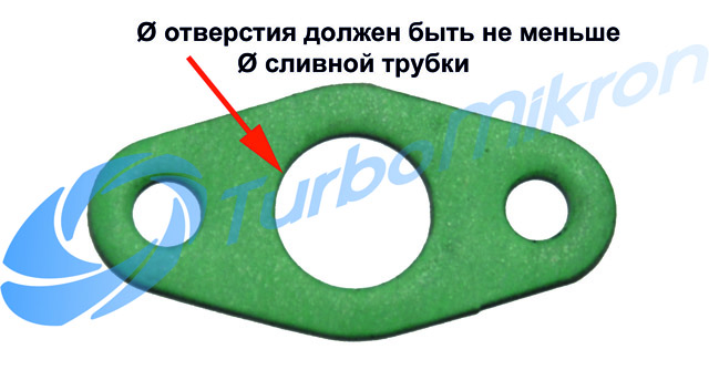 - заменить прокладки и уплотнительные кольца на штуцерах подачи и слива масла (отверстие в прокладке должно быть не меньше отверстия сливной трубки, см. фото ниже). Категорически запрещается использовать герметик на подводе и сливе масла для герметизации);