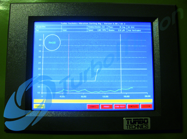 9. Балансировка картриджа турбины проводится на специализированном стенде Turbo Technics VSR 300 с подачей масла, прогретого до рабочей температуры двигателя, при этом обороты ротора могут достигать 250 000 оборотов в минуту. После чего проводится проверка на наличие подтеков масла;
