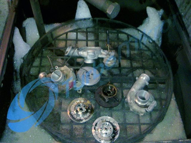4. Получив согласие заказчика на ремонт турбин, годные детали проходят пескоструйную очистку и тщательно промываются в моечной машине и ультразвуковой ванне (удаляется масляный нагар и т.д.);