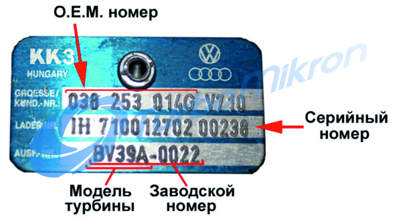 Пример оригинального номера (О.Е.M.-номер) турбины KKK: