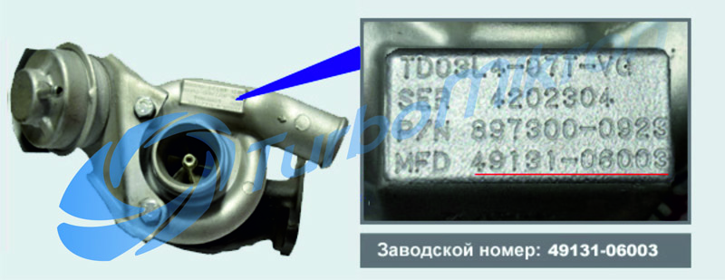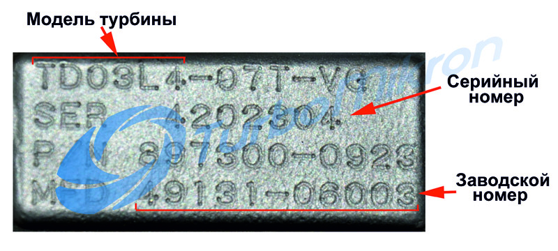 Если турбина демонтирована с авто, найти идентификационные данные можно на информационной табличке (бирке) на корпусе компрессора, реже – на среднем корпусе турбины.